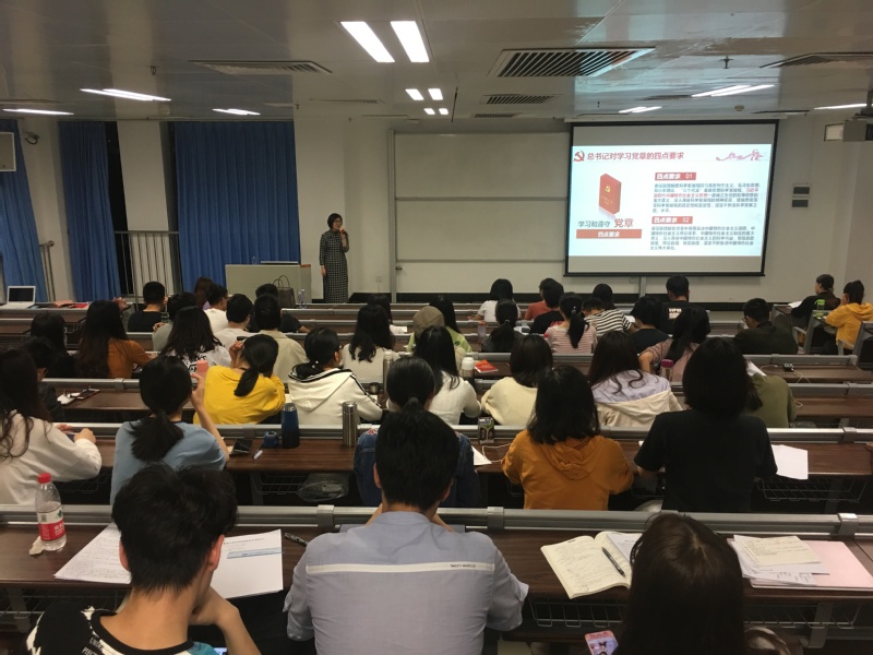 为了继续深入贯彻学习党的十九大精神,加深学生对党章修正案得理解,邵桂珍以“不忘初心,牢记使命——认真学习党章严格遵守党章”为主题,带领大家逐条逐段地学习了新党章。邵桂珍首先介绍了中国共产党党章的起源及背景,讲解了历届大会对党章的修正情况及重要意义,重点讲解了十九大党章修改的具体内容,包括“我国社会主要矛盾的转化”、“实现中华民族伟大复兴的中国梦”等多项写入新党章的内容,指出“党章修正案始终贯穿着习近平新时代中国特色社会主义思想这根红线”。最后,邵桂珍勉励全体学员要学习贯彻党的十九大精神,认真学习新章程,志存高远、坚定信念,争取早日入党。