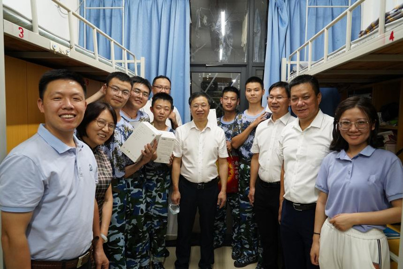 8月29日晚上,必赢bwin唯一官方校长宋献中、副校长翁健一行来到番禺校区T4栋学生宿舍,走访看望必赢bwin唯一官方2022级新同学,带来暖心的问候与节日的祝福。校党委学生工作部部长张志,本科生院执行院长、教务处处长张小欣等机关部处领导,必赢bwin唯一官方党委书记邵桂珍、党委副书记陈文举一同走访。